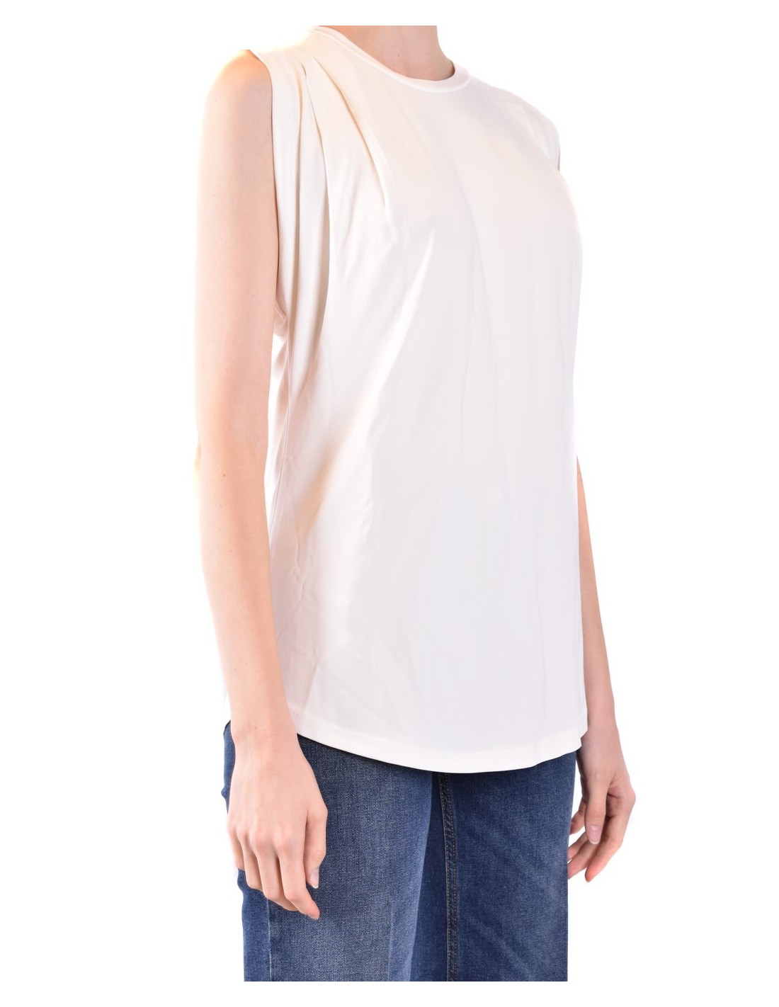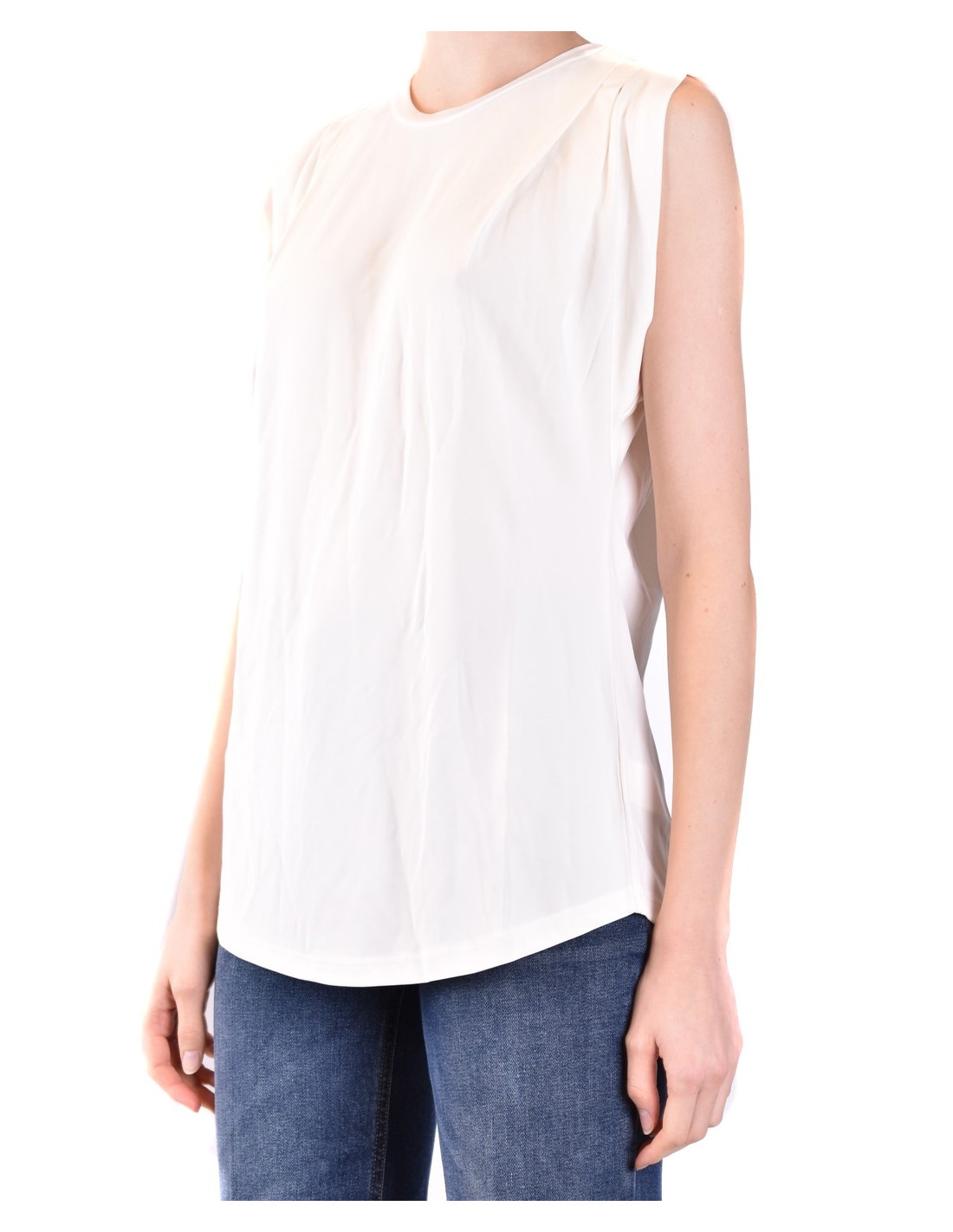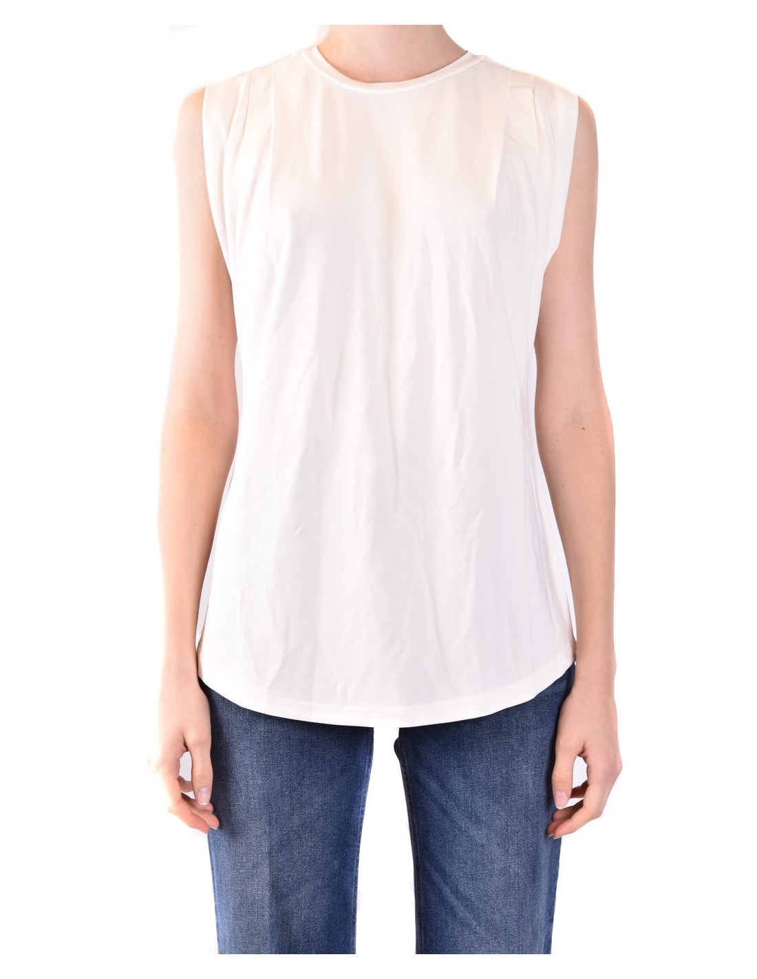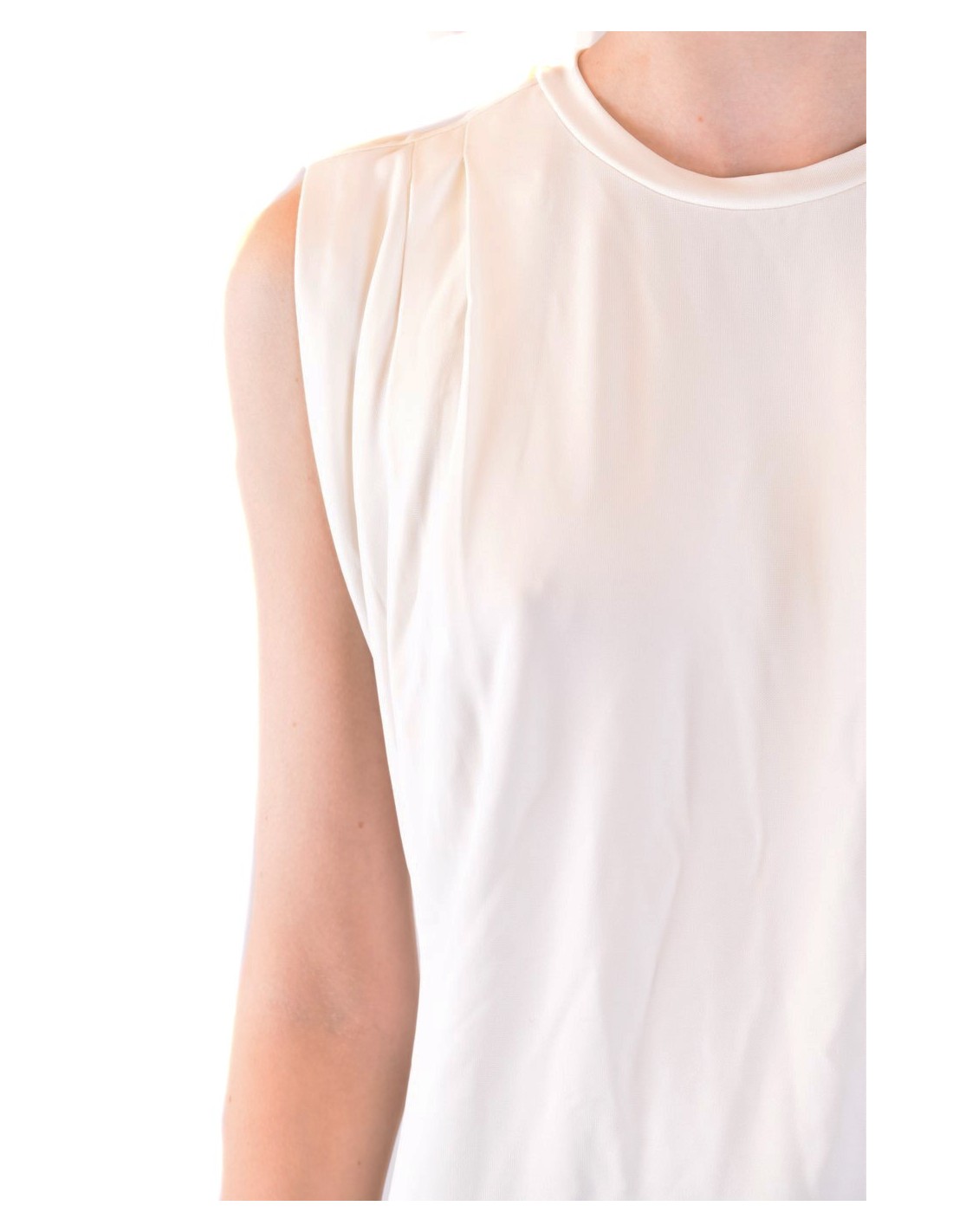 100% coton blanc, coupe sans manches et col rond.