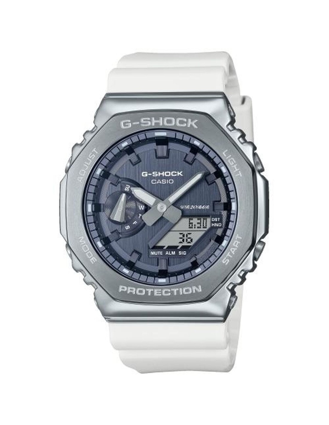 La GM-2100WS-7AER de Casio est une montre pour homme qui se distingue par son design robuste, sa fonctionnalité polyvalente et ses matériaux de haute qualité, pensée pour ceux qui recherchent une alliance entre style contemporain et résistance au quotidien. Ce modèle dispose d’un bracelet interchangeable, proposé en acier inoxydable ou en silicone blanc, permettant à chaque utilisateur d’adapter la montre à différents contextes, qu’il s’agisse d’environnements professionnels, d’activités sportives ou de moments décontractés, offrant ainsi une grande flexibilité esthétique et fonctionnelle. Le boîtier en acier inoxydable assure durabilité et solidité, résistant efficacement à l’usure quotidienne et renforçant le caractère robuste emblématique de la gamme G-Shock de la marque. Dotée d’une fonctionnalité multifonction, cette montre intègre des caractéristiques pratiques telles que chronographe, calendrier, alarmes et étanchéité, des éléments essentiels pour ceux qui apprécient la précision et la fiabilité dans la gestion du temps au quotidien. La GM-2100WS-7AER est conçue selon les normes internationales de Casio, garantissant une qualité éprouvée sur des marchés comme la Chine et l’Espagne, répondant à diverses préférences et modes de vie à travers le monde. Idéale pour ceux qui recherchent un équilibre entre élégance moderne et performances techniques, cette montre apporte polyvalence et caractère à toute tenue.