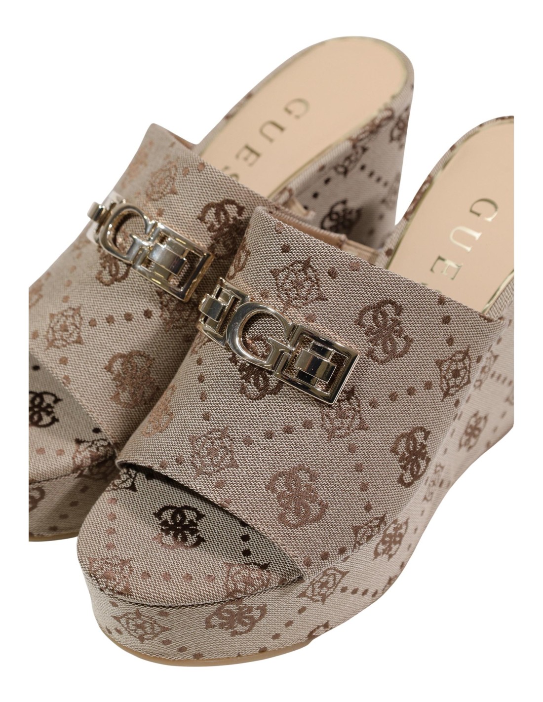 Guess – Mules Femme beige imprimé plateforme