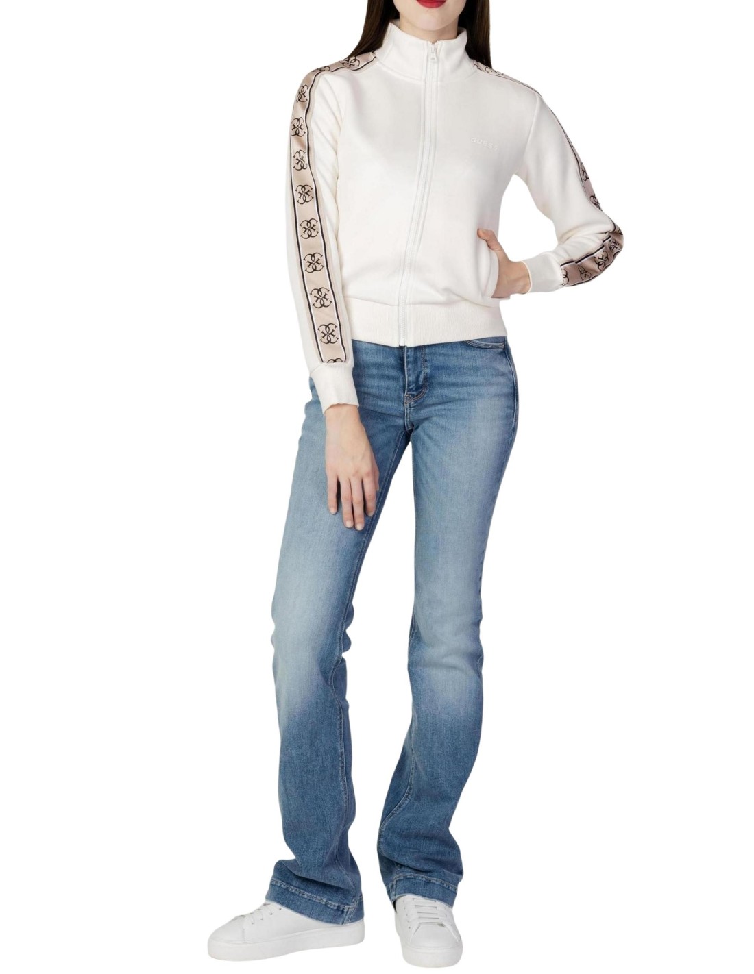 Sweat femme Guess Active blanc zippé