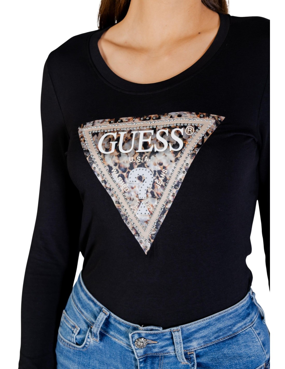 T‑shirt femme Guess noir manches longues