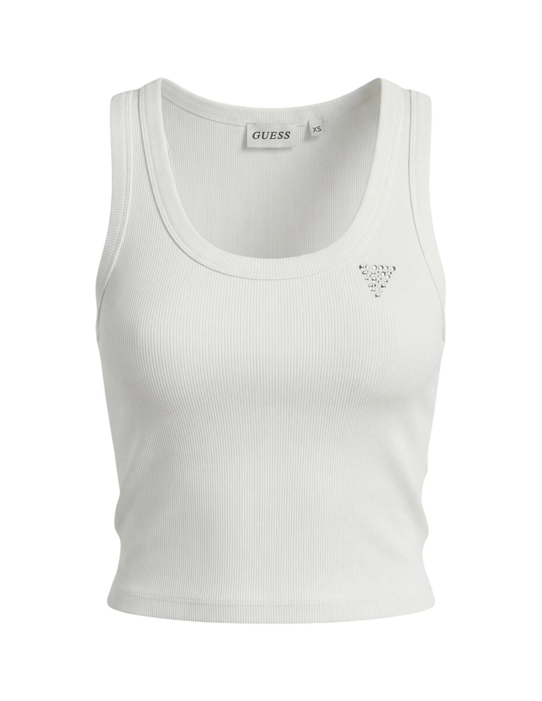 Ce top blanc Guess Active offre une matière douce, une coupe sans manches et un style moderne pour la saison estivale.